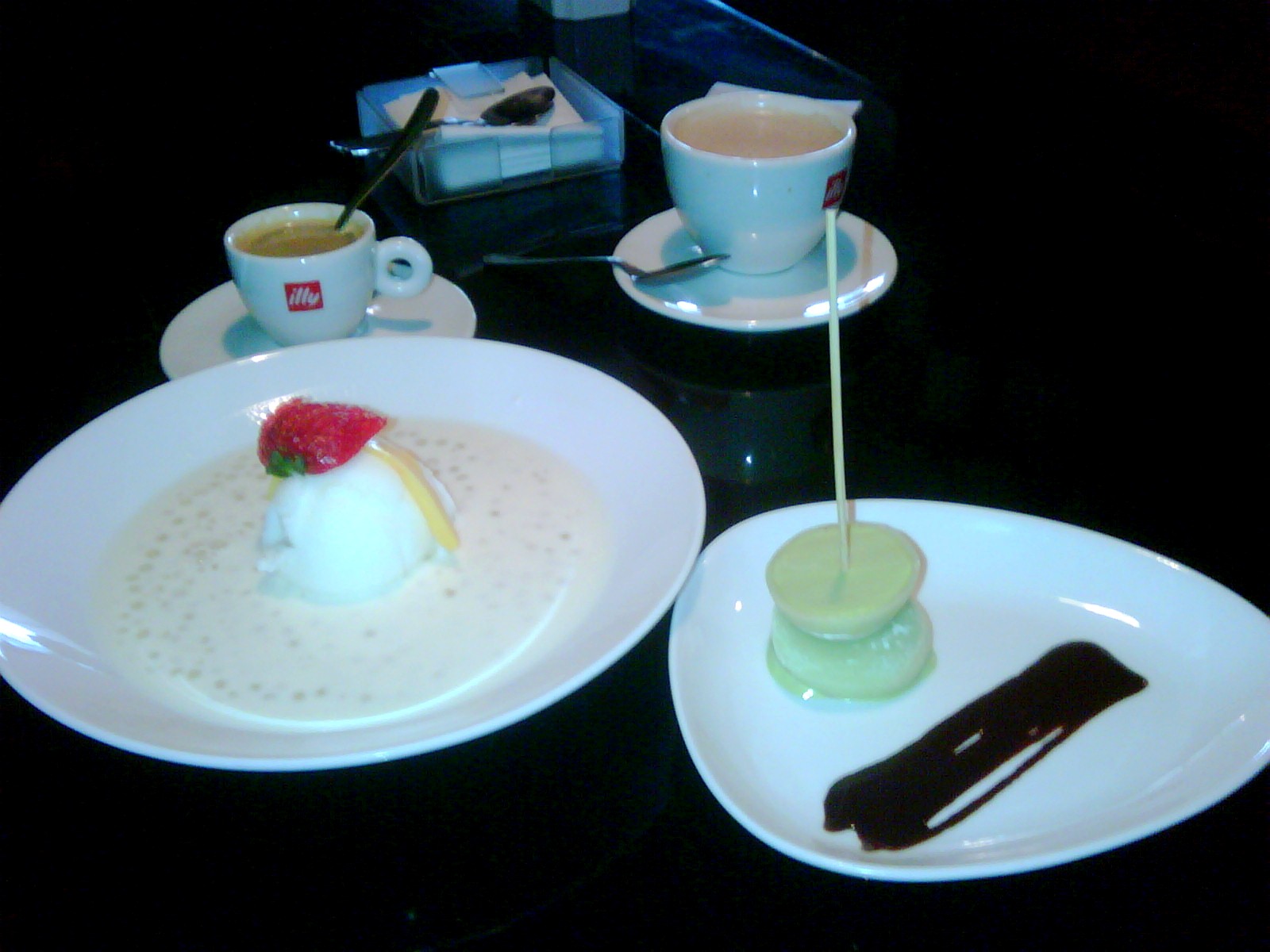 Este postre consta en una bola de nieve de litchi o vainilla (recomiendo la vainilla, creo que va mejor) con dulce de tapioca… Cualquier intento mío en describir este postre será inútil por lo que me abstendré… sólo pídanlo. Si por alguna razón, la tapioca no es opción para su paladar, recomiendo también el Moshi Ice Cake… el sabor del helado de te verde sigue grabado en mi memoria… probarlo fue un cierre perfecto para una rica comida oriental, envuelta en una deliciosa pasta de arroz, devuelve un poco los sentidos a su lugar. Rico, sobretodo si es acompañado por un café … no hay más que decir.