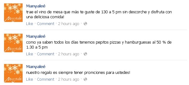 El Manyaleé ha mostrado mucha iniciativa en redes sociales con buenas promociones y ofertas nuevas como la posibilidad de llevar tu propia botella de vino sin cargo de descorche.